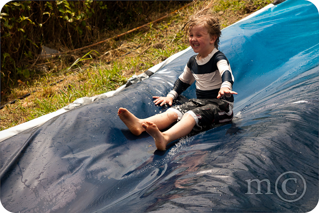We had an awesome weekend. Beautiful times with wonderful people. A party, a BBQ and another party. The rocket cake was a success (will blog that party soon). Even though there were some tricky times (like all the other kids eating ice creams and the wee guy being given chips with milk in them) I'm choosing instead to just remember how much fun was had by all. Everyone had a blast on the water slide! And last night the BBQ was at an old friend's place to celebrate their new deck. She and I have been friends since we were in nappies! The boys were pretty great considering how whacked they must have been after a couple of hours of sliding, sunshine and party food. They pottered about eating chippies, dancing and playing with some new wee friends.