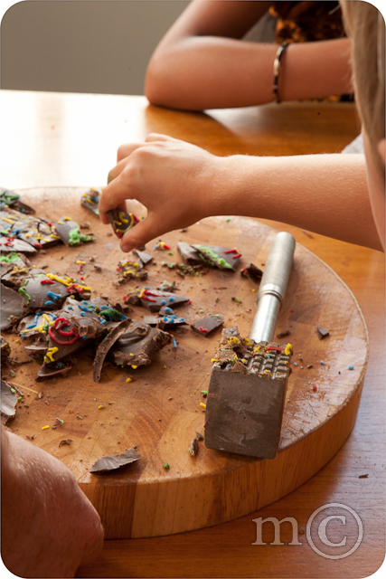 Soon followed by the gobbling of the cake (and all those lollies hiding inside the rocket's dome).