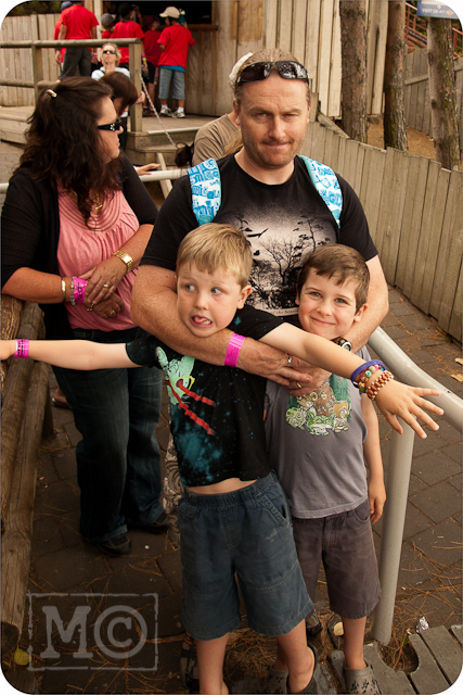Our favourite rides were the log flume, the gold-rush and the corkscrew roller coaster. We ate candy floss and crazy chips on a stick. It rained after lunch (we'd packed our jackets) but that didn't slow us down. At the end of the day the two blondies (below) went on the corkscrew eight times without stopping!! Once was enough for me! The two of them also did the fear fall (a drop from 18 stories up). B looked a little green afterwards but our almost school boy was keen for another go!