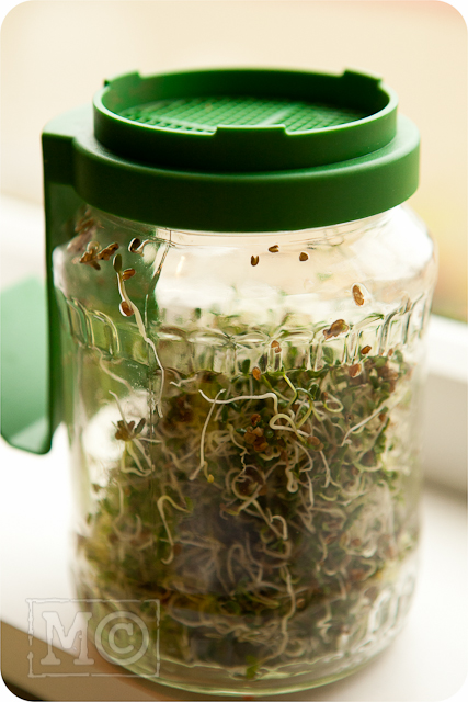 ...you need one of these!! Mine was only $14 when I bought it (quite a long time ago now) but it'so much better than the mesh one I had before. Or perhaps I'm just better at using it these days. The boys like to eat the sprouts and to help to grow them too. Sprouts are always good as hair on bagel faces too!