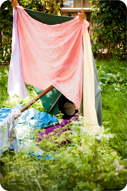 Little one found the magician costume on the weekend, a stick for a wand and a wee glass dropper bottle for his potions. Then we built a house with the old umbrella and play cloths, complete with a rainbow door that you had to pass under to get there. He played happily for ages by himself, so sweet. I adore imaginary play, it's something that we lose as we grow up and it's so beautiful (even those repetitive games of puppy store).