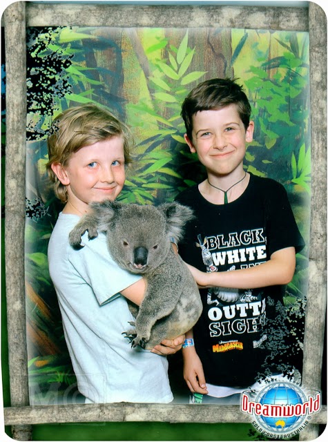 The koalas were lovely and the keeper's talk pretty interesting too. The boys posed for pictures with a koala, a croc, an owl and a snake. We also got an old fashioned family photo done (a Wild West theme) which I'll have to photograph and blog here later.