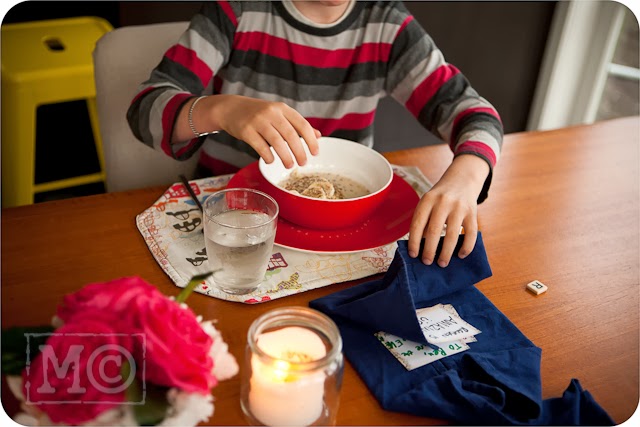 So this morning, despite the general lack of energy I was feeling, we set the table prettily for our slow cooker porridge (recipe here). We folded the napkins like envelopes (a suggestion from the book), wrote wee love notes for each other and slipped them inside.