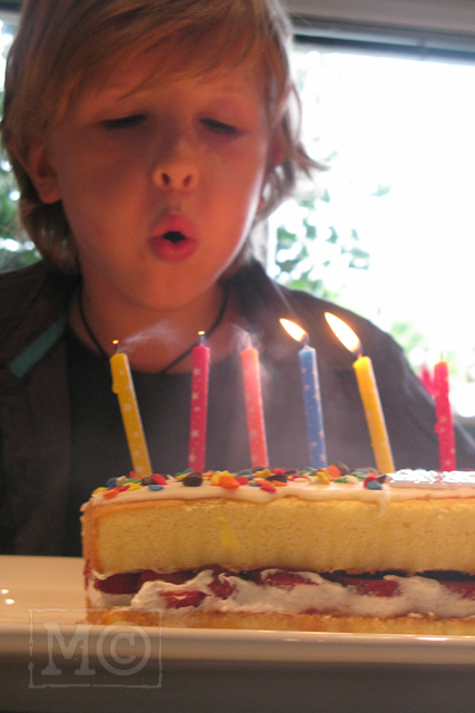 He decorated the cake just how he wanted it. A sponge cake with whipped coconut cream and strawberries. Pretty much the same as the one we'd had in Auckland. He got to light his own candles too. I love how much the boys can do for themselves these days. It really is a great stage right now.