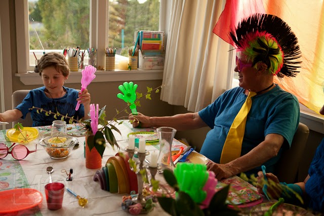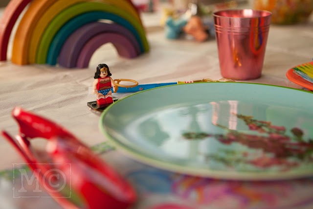 Inspired by the need to get a photo of my parents (who are here this weekend) in costume (for our photo wall), I decided that a little theme dinner was in order. I strung up the bunting and got out everything colourful that I could find.
